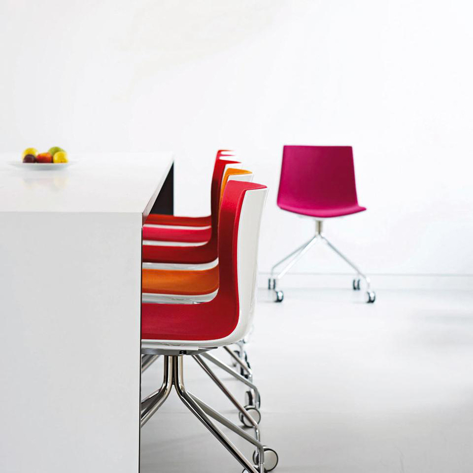With its simple organic shape made of polypropylene or wood, Catifa 46 chairs provide great design. A remarkable degree of flexibility and comfort, which is unexpected from this seat shell, gives the chair a contemporary look. Shell width cm46.